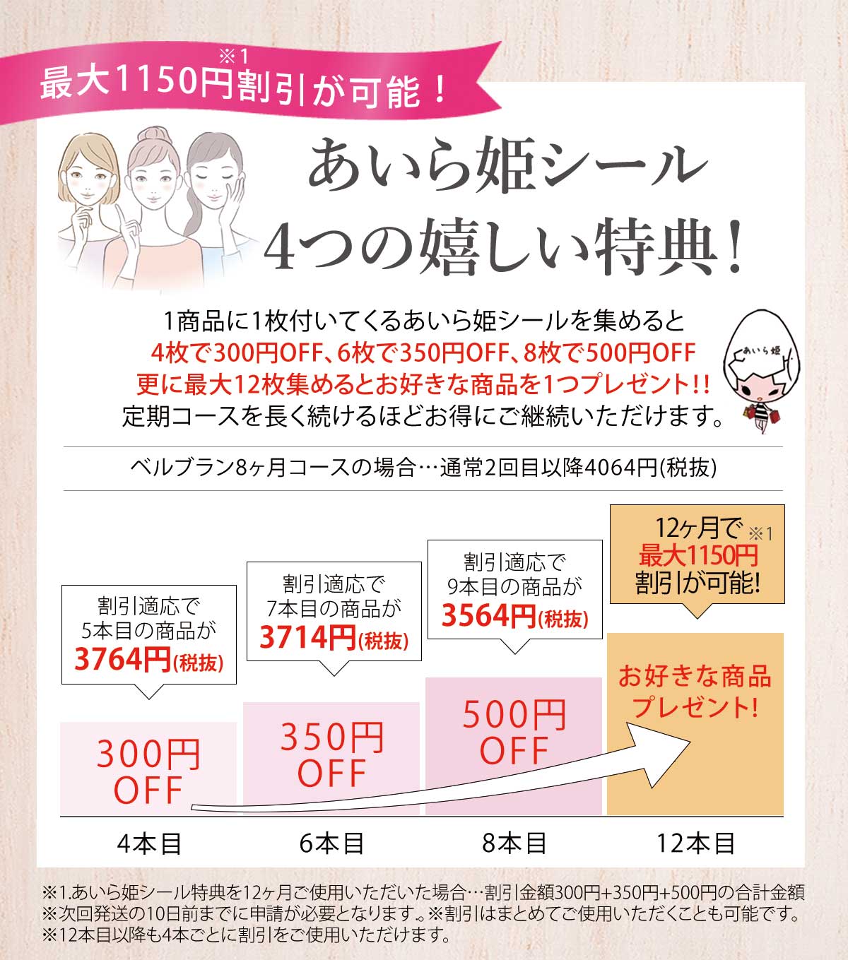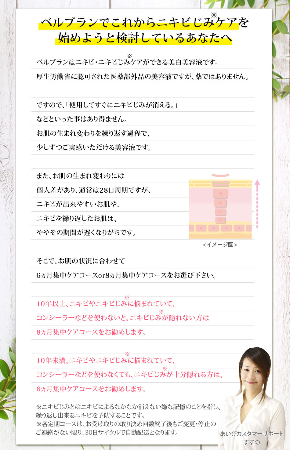携帯からお申し込みの方は「@aibi-skin.co.jp」からのメールが受信できるようにドメイン指定受信をお願い致します。